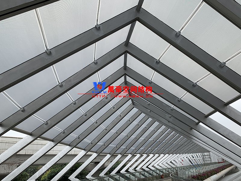 深圳龍崗三館一城項目市政配套工程1號連廊膜結(jié)構(gòu)工程項目為單層ETFE膜結(jié)構(gòu),共劃分為101個單元,總面積約為2000㎡,由寧波萬豪空間結(jié)構(gòu)工程有限公司承建。