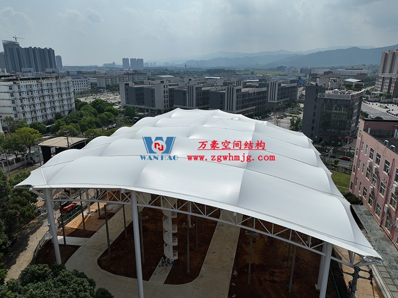 國網江西省電力有限公司培訓中心實訓基地改造膜結構項目位于江西省南昌市經濟技術開發去海棠南路268號,該項目用鋼量約525噸,PTFE膜結構展開面積約5200平米。