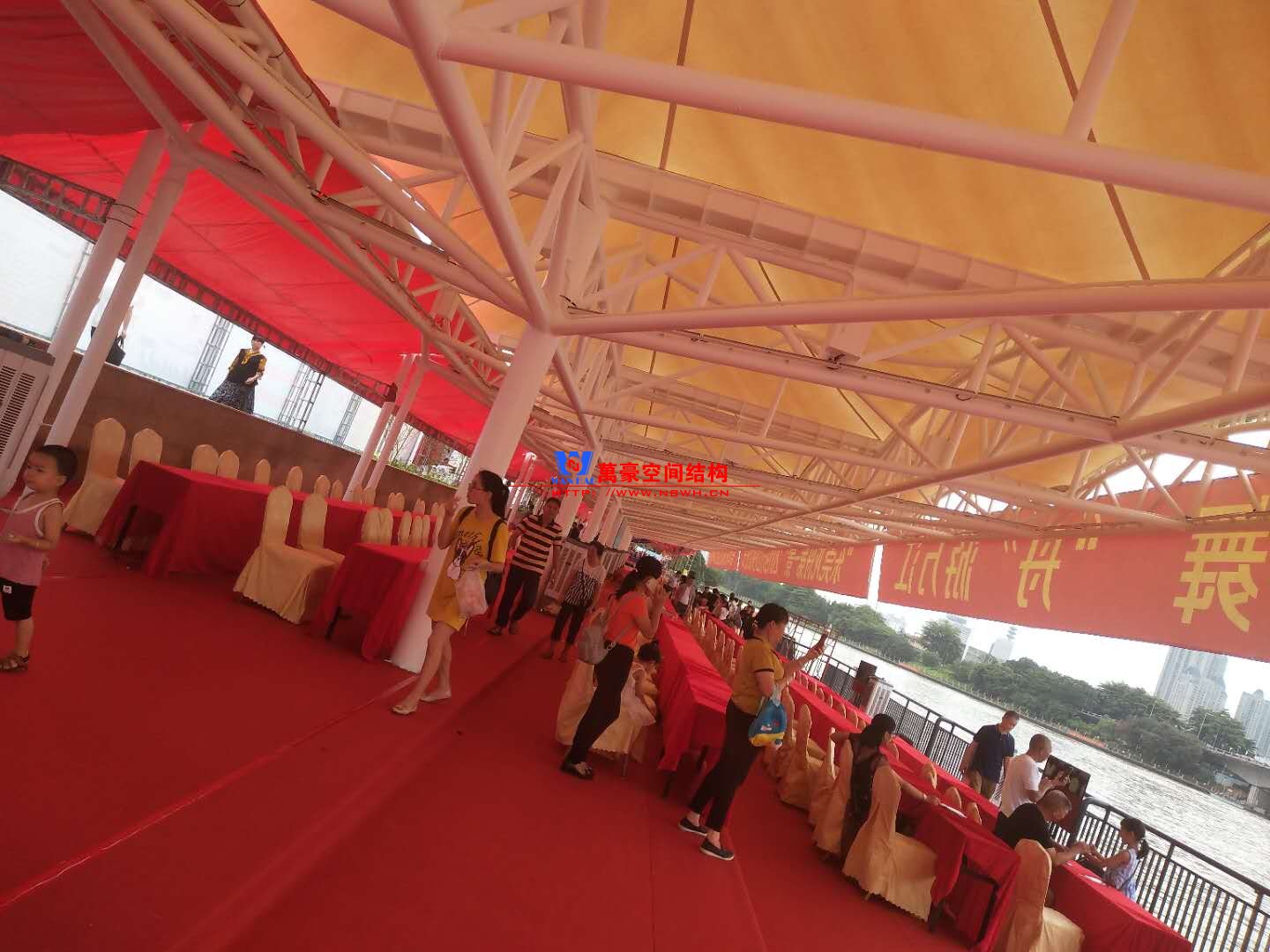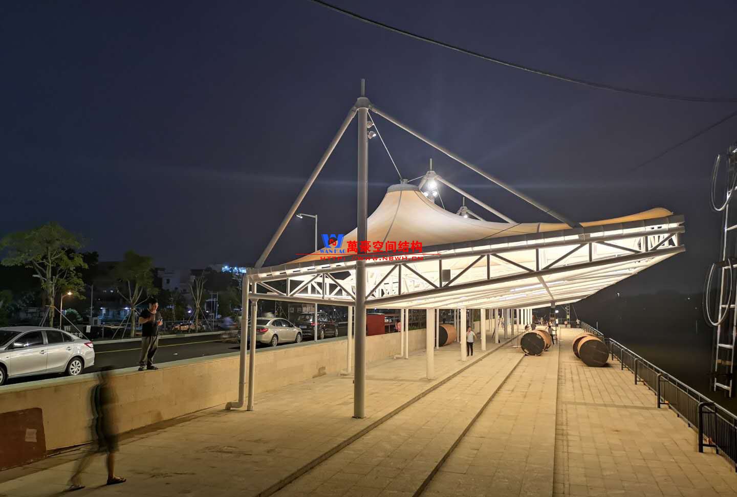 東莞東江西岸景觀膜結構工程位于廣東省東莞市,該項目是當地政府打造的重點工程,由寧波萬豪空間結構工程有限公司承建。
