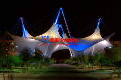 牡丹花仙湖看臺膜結構工程效果圖 橫店俄羅斯館屋頂鋼結構裝飾球吊裝 山東小品膜結構