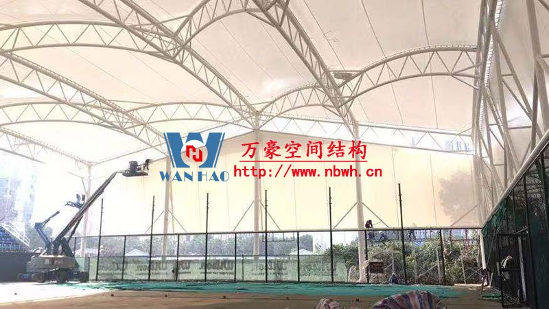 寧波(鄞州)網球中心遮陽棚膜結構工程二期項目,位于寧波市鄞州區首南街道文華路199號【寧波(鄞州)網球中心內】,整個工程用鋼量220噸,膜結構球場展開面積約6000平方米,由寧波萬豪空間結構工程有限公司承建。