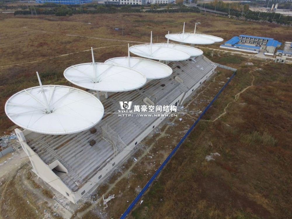 我公司有幸承接“常州大學西太湖校區體育看臺項目”。項目位于常州市延政西路與豐澤路交叉口 (常州大學西太湖校區體育場內)。該工程鋼結構用量153噸、膜展開面積3500㎡,膜材采用進口法拉利膜材。